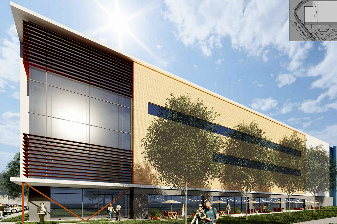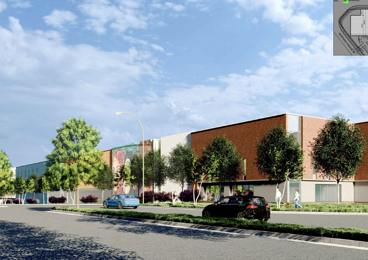 The developer will go before DC's Zoning Commission in October with its planned unit development (PUD) and map amendment for a 186,000 square-foot warehouse with approximately 200 parking spaces at the intersection of New York and Montana Avenues and Bladensburg Road NE (map). New renderings provide a sense of what the project will look like, even as details remain scant beyond a couple sentences in the PUD application.