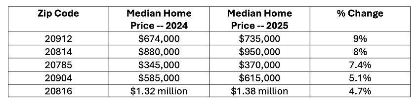 The 5 Zip Codes in the Maryland Suburbs With the Highest Home Price Appreciation in 2025