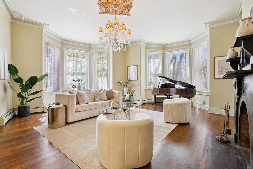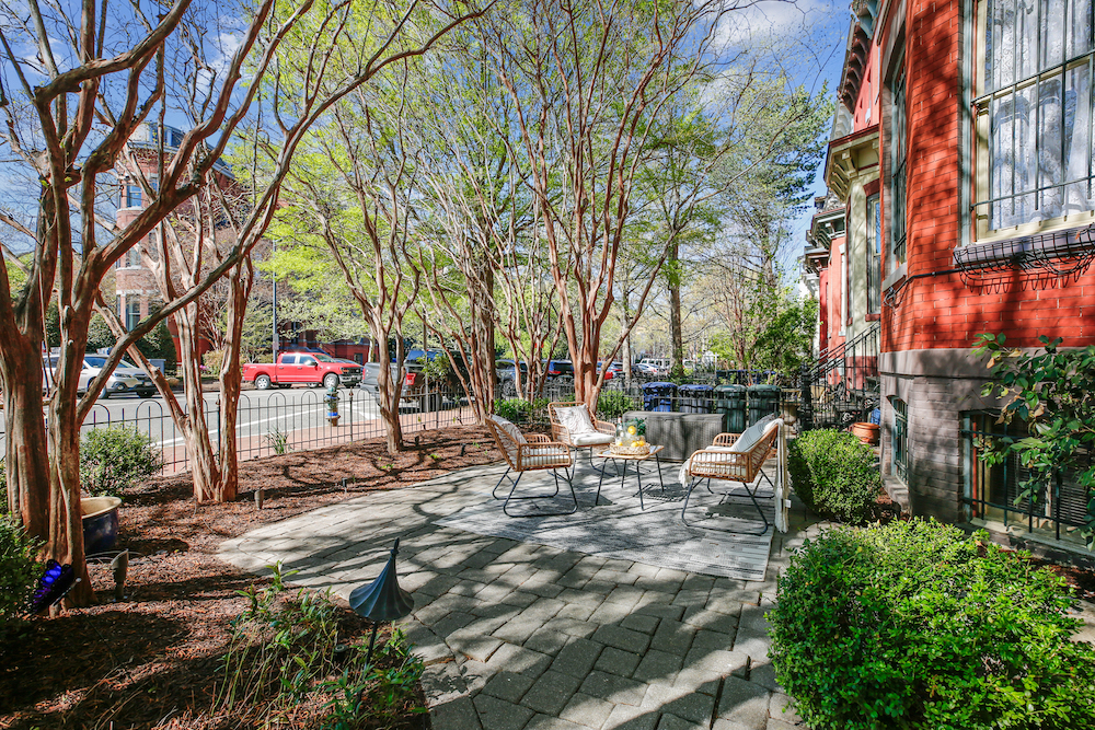 Logan Circle Grande Dame. Timeless elegance in this circa-1890 stately residence overlooking Logan Circle. 2 sides of bay windows and coveted SW exposure. Flooded with natural light, park views and unmatched location. 11-foot ceilings, rich hardwood floors, intricate custom woodwork, and 2 stunning fireplaces with exquisite mantlepieces. 1st upper level features gracious primary suite with fireplace, full bath (antique claw-foot tub), and a spacious 2nd bedroom/family room. Top level has 3 bedrooms and a 2nd full bath provide flexibility for family, guests, or office space. Fully finished lower level—with a private entrance—has living room, spacious kitchen, 6th bedroom with ensuite bath, and walk-out patio access.