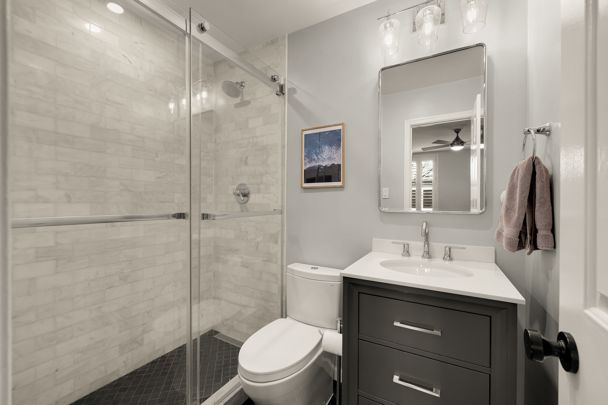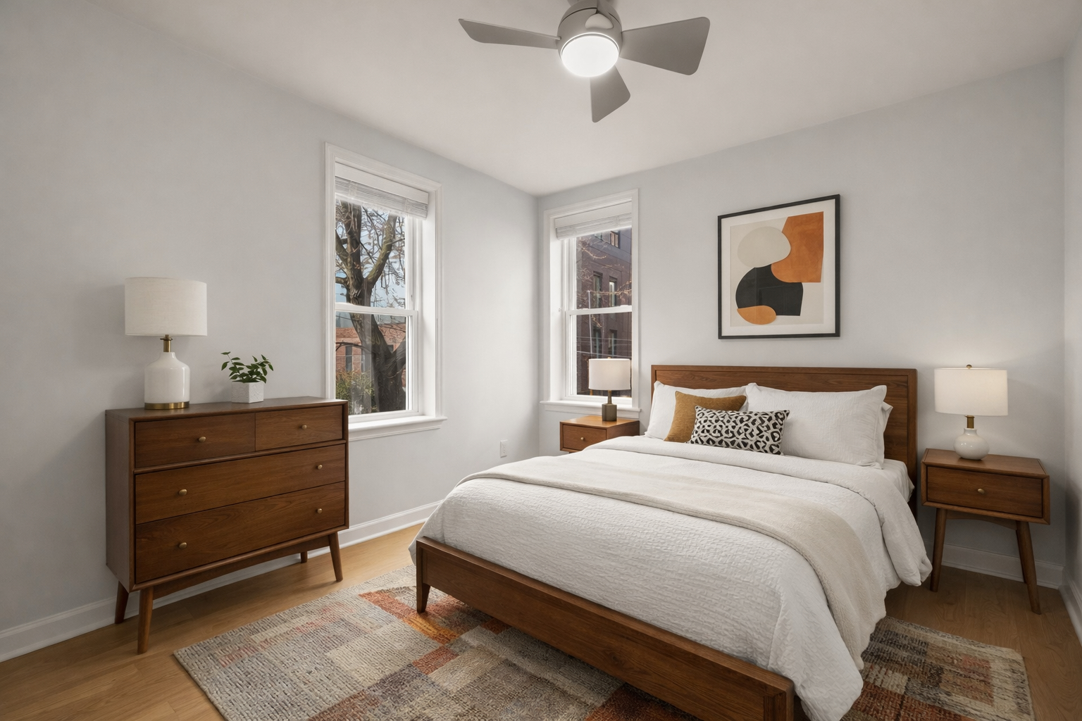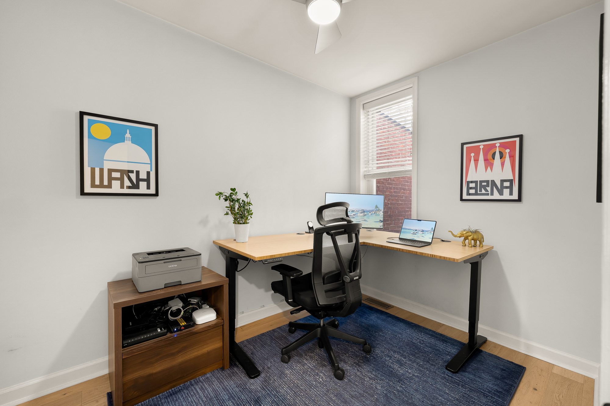 Located in Shaw near LeDroit Park, this rowhome offers a thoughtfully designed interior and generous outdoor space in one of DC’s most walkable neighborhoods. High ceilings, wide plank hardwood floors, and recessed lighting enhance the sense of space. The main level flows from a spacious living room to a dining area and renovated kitchen with stainless steel appliances, quartz counters, subway tile, and shaker cabinetry, plus powder room and laundry. The kitchen opens to a private patio with off-street parking. Upstairs: a primary suite, two additional bedrooms, and a renovated hall bath. Updates include baths (2021), flooring (2023), HVAC (2024), and fence (2025). Walk Score 98 near Metro, Whole Foods, and neighborhood favorites.