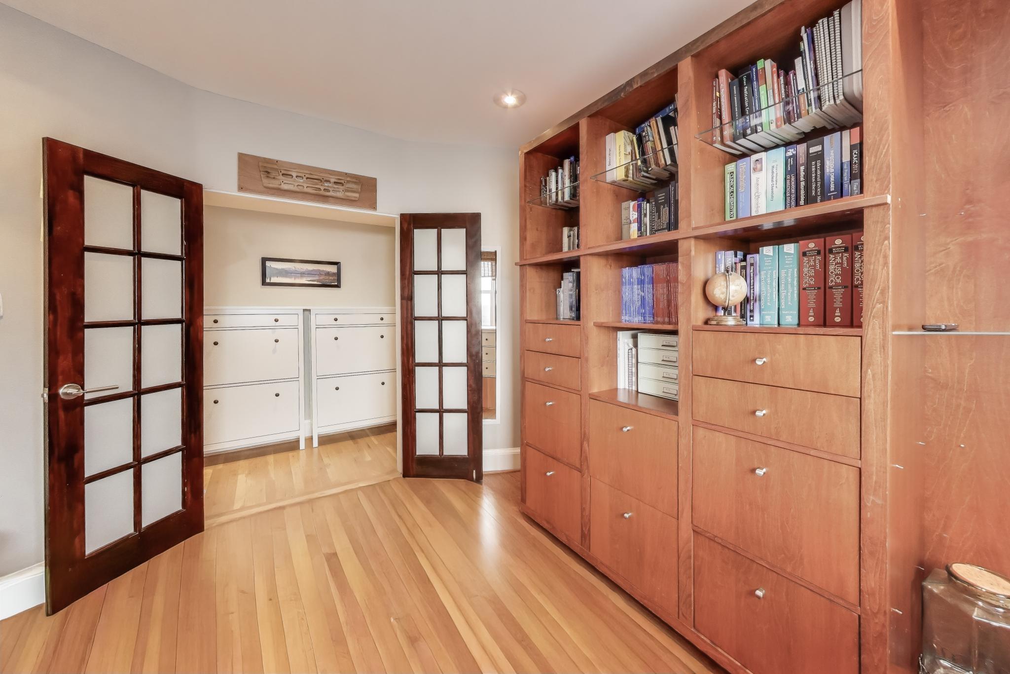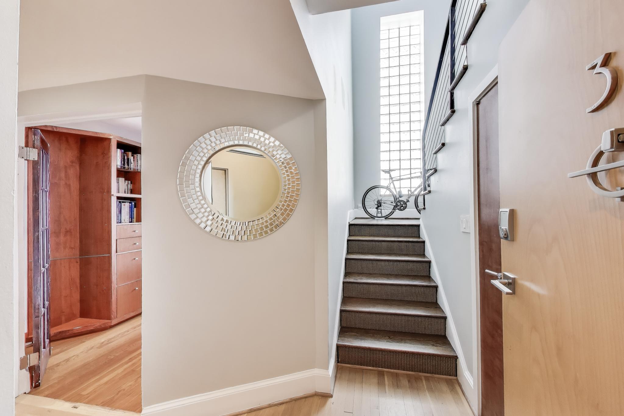 Perched atop The Champlain in Adams Morgan, this renovated 3BR/2BA co-op offers 1,764 SF across a townhome-style two-level layout. The sunlit main level features east/west exposures, skylights, fireplace, French doors with Juliet balconies, casement windows, and a chef’s kitchen with double refrigerator, double ovens, gas cooking, and oversized island. The primary suite is also upstairs, while two entry-level bedrooms, full bath, and laundry create a private guest/work wing. Assigned garage parking + storage included. More detailed video: https://youtu.be/AKsDBwuCsf8.