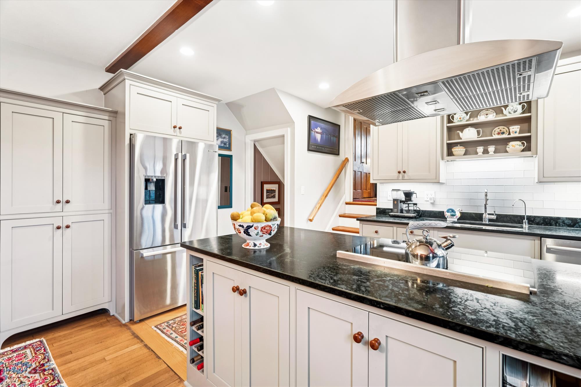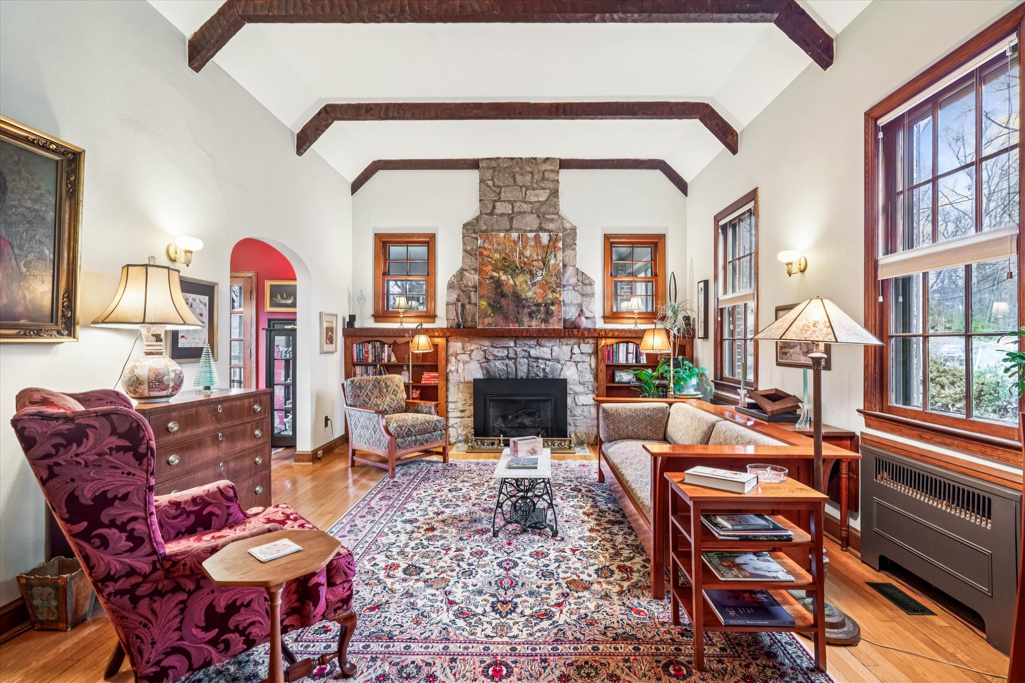 1930’s Tudor Revival, on a quiet dead-end, street exudes the charm, grace and character of that era, yet boasts the modern amenities of today. On a quarter acre lot, with over 3000 sf, this 5-level home features a LR with 11’ ceiling, exposed beams and stone fireplace. 4BR, 3FB. Remodeled kitchen with custom cabinetry and Bosch appliances, including induction cooktop. House also offers FR with second fireplace, multi-purpose room, screened porch, abundant storage, an attached garage and back patio. Large back yard was professionally landscaped and front and rear yards changed from grass to woodland gardens. Convenient to downtown Silver Spring’s restaurants, shops, theaters, Metro. Near Sligo Creek Park trails, tennis courts, playgrounds.