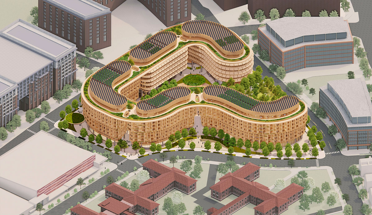 The five-building, 650,000 square-foot project will include a 178,000 square-foot office building, a hotel, and residential buildings with upwards of 300 units. At least 150 of the residential units will be affordable to households earning 30-80% of median family income.
