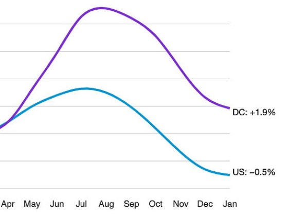 A new report shows that apartment rents rose about 2% in DC over the last year.